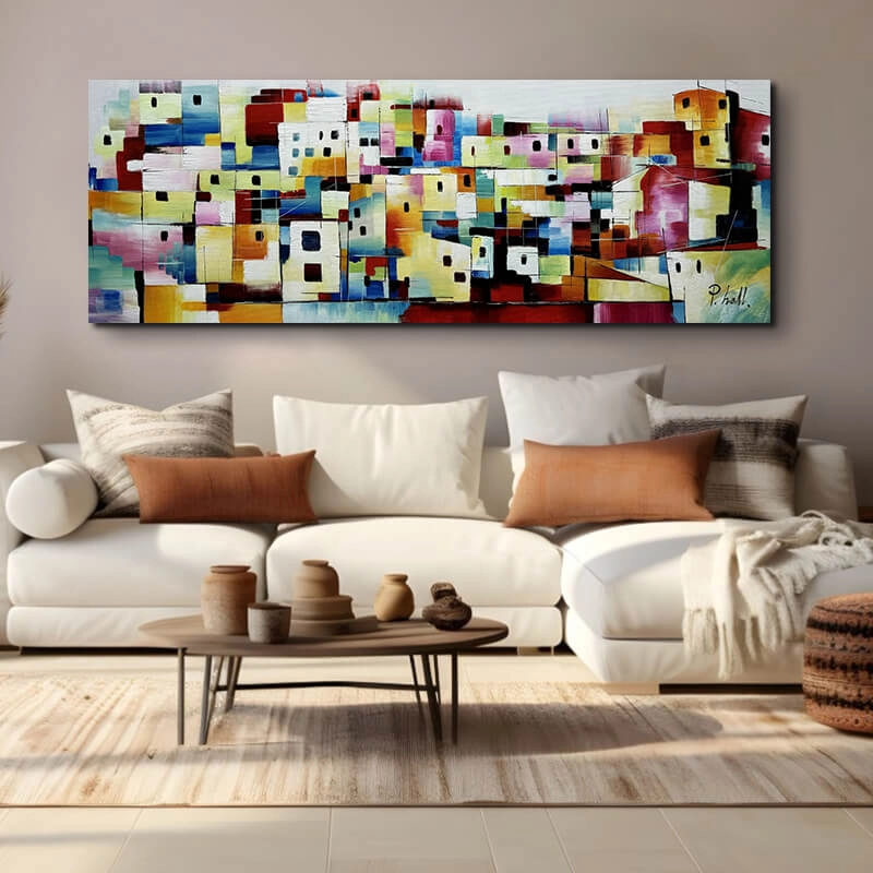 I dag lever de fleste mennesker i boliger, der er præget af det minimalistiske udtryk. Vi indretter i stol stil vores hjem med møbler og inventar, der er meget stilrent i sit udtryk. Dette gør, at vores hjem meget hurtigt kan blive en smule kolde at se på. Hvis alt inventar i boligen er sort, hvidt og gråt, giver det ofte en noget tom fornemmelse. Her kommer kunsten ind i billedet. Kunst - i vores tilfælde i form af malerier - skaber liv og stemning i rummet. I det moderne hjem er et moderne maleri ofte lig med et abstrakt maleri - og ofte et maleri i stærke farver, netop grundet det "kaos" der ofte eksisterer i et abstrakt maleri, idet det som udgangspunkt ikke har nogen fast form eller motiv. Dette abstrakte kaos giver en harmoni med det resterende minimalistiske inventar og sammen skabes en unik synergieffekt, der giver en dejlig varme og personlig i rummet.
