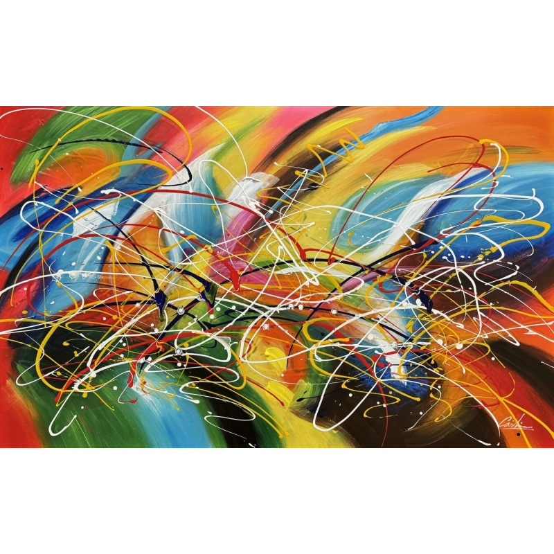 Når du køber et abstrakt maleri hos galleri Mynewart.dk kan du være sikker på, at kvaliteten er helt i top. Alle vores malerier er håndmalede af meget dygtige kunstnere, der dagligt udfolder deres evner på deres eget galleri, når de ikke maler malerier til vores galleri. Lige såvel som ved alle andre værker, er de abstrakte malerier malet på et lærred af meget høj kvalitet. Dernæst er lærredet spændt ud på en solid blindramme i træ, hvorfor den er lige til at hænge op på væggen. Blindrammen er naturligvis udstyrret med kroge, således at der blot skal bankes et søm eller skrues en skrue i væggen, hvorefter maleriet kan hænges op. Blindrammen på vores malerier er mellem 2,8 og 4 cm. tykke. Dette er nærmere beskrevet i infoteksten på de respektive malerier.