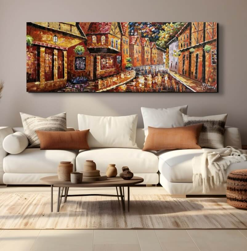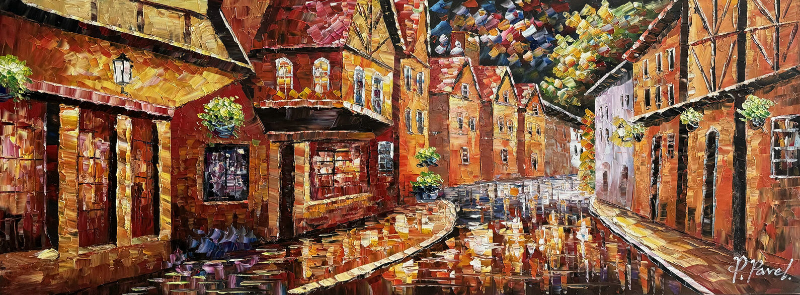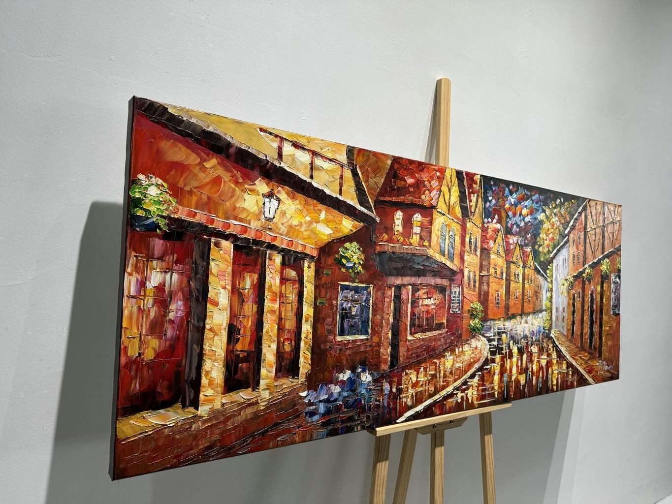 Alle malerier er håndmalede med oliemaling, der er den klassiske form for maling. Dette giver en god dybde i farverne. Maleriet sendes gratis med GLS. Maleriet er spændt udover en ca. 3,3 cm. tyk blindramme - og er klar til at blive hængt op på væggen.