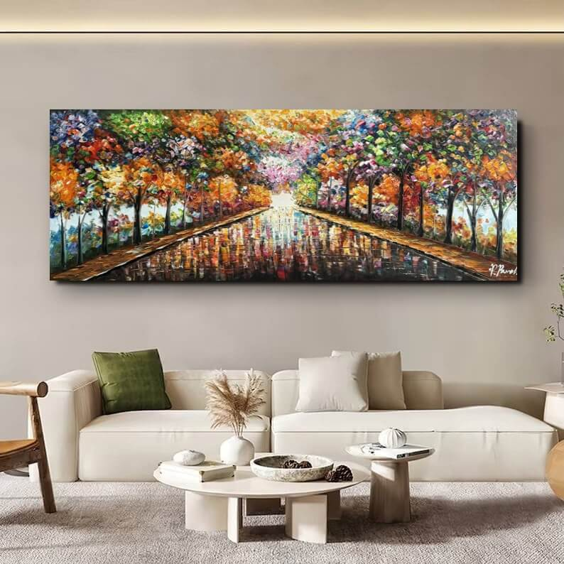 Alle malerier er håndmalede med oliemaling, der er den klassiske form for maling. Dette giver en god dybde i farverne. Maleriet sendes gratis med GLS. Maleriet er spændt udover en ca. 3,3 cm. tyk blindramme - og er klar til at blive hængt op på væggen.