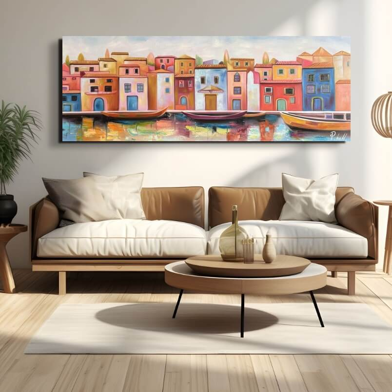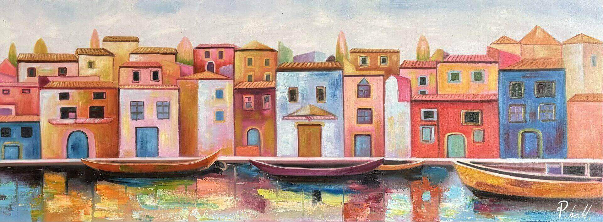 Alle malerier er håndmalede med oliemaling, der er den klassiske form for maling. Dette giver en god dybde i farverne. Maleriet sendes gratis med GLS. Maleriet er spændt udover en ca. 3,3 cm. tyk blindramme - og er klar til at blive hængt op på væggen.