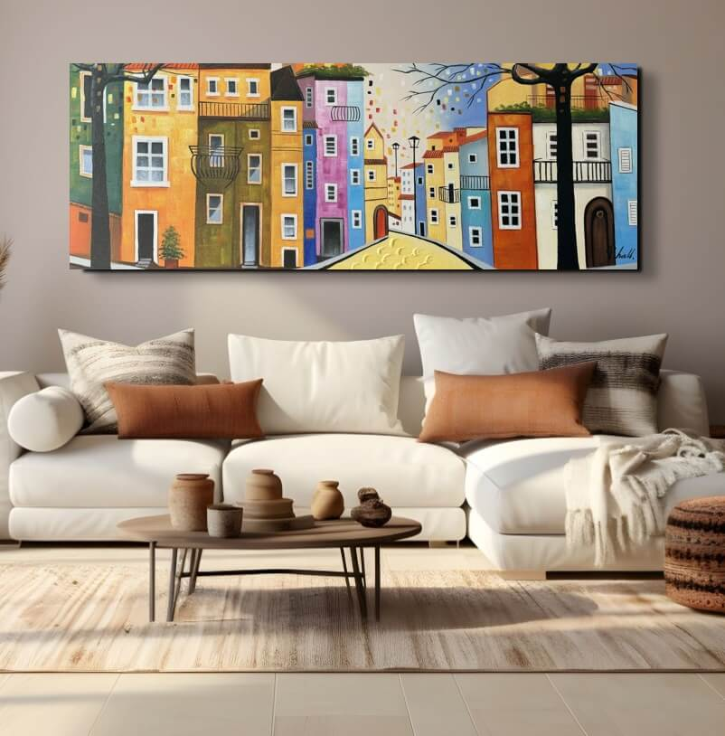 Alle malerier er håndmalede med oliemaling, der er den klassiske form for maling. Dette giver en god dybde i farverne. Maleriet sendes gratis med GLS. Maleriet er spændt udover en ca. 3,3 cm. tyk blindramme - og er klar til at blive hængt op på væggen.