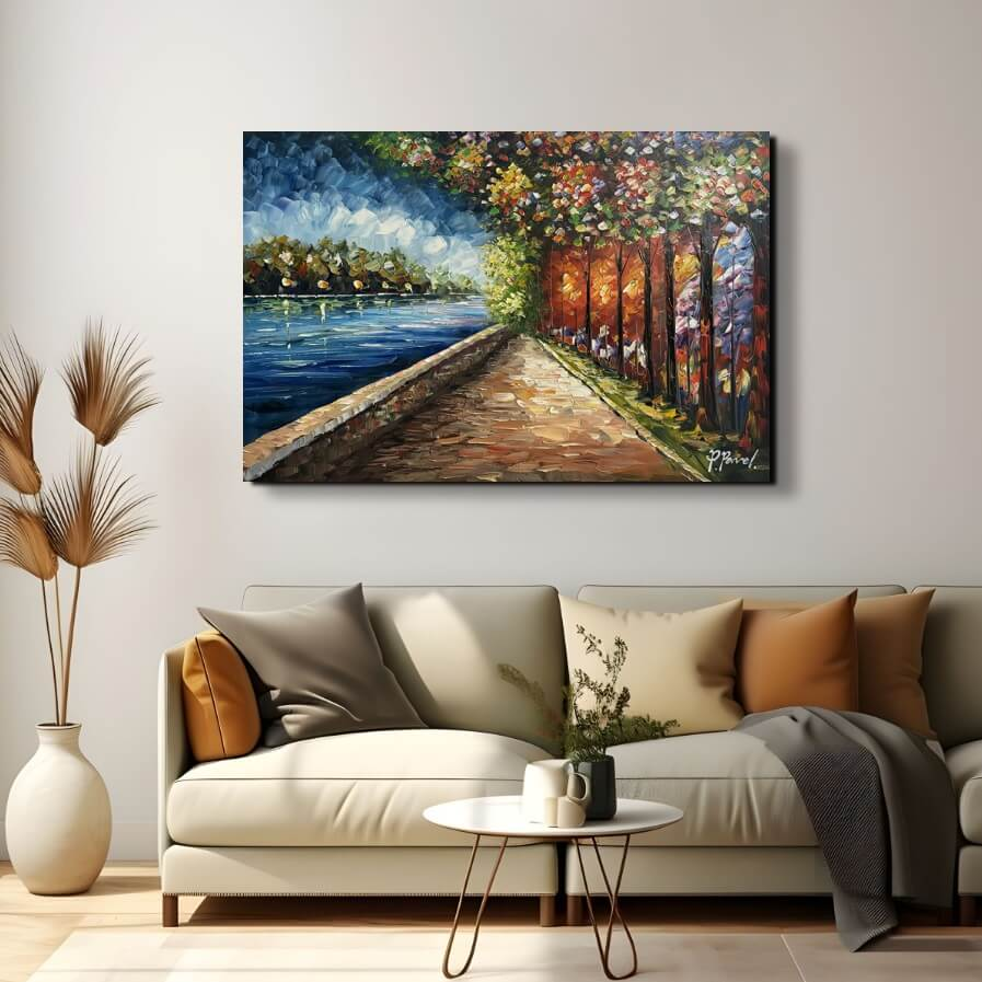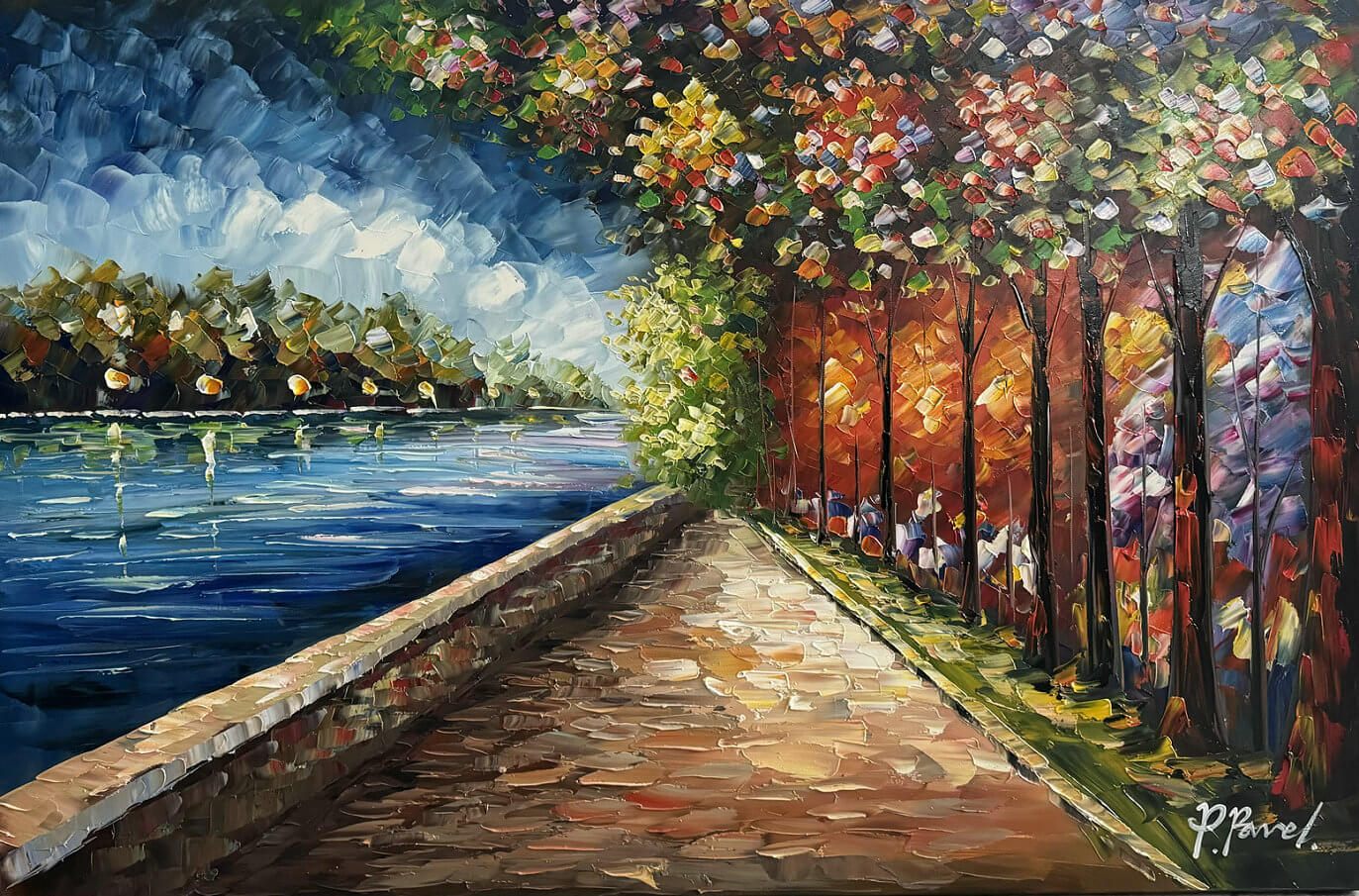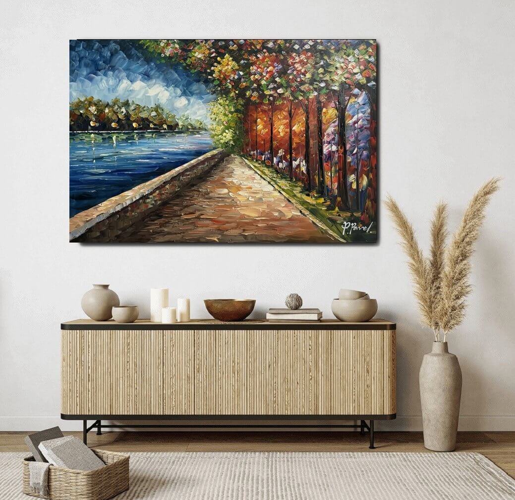 Alle malerier er håndmalede med oliemaling, der er den klassiske form for maling. Dette giver en god dybde i farverne. Maleriet sendes gratis med GLS. Maleriet er spændt udover en ca. 3,3 cm. tyk blindramme - og er klar til at blive hængt op på væggen.