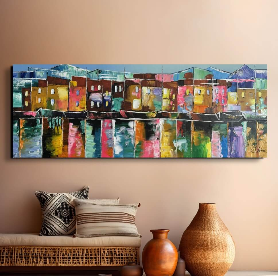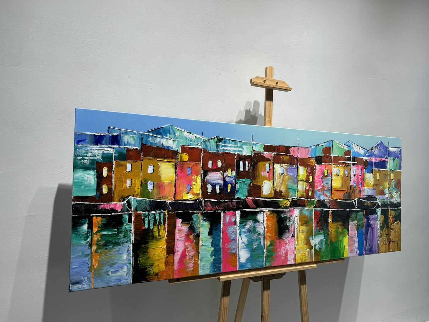 Alle malerier er håndmalede med oliemaling, der er den klassiske form for maling. Dette giver en god dybde i farverne. Maleriet sendes gratis med GLS. Maleriet er spændt udover en ca. 3,3 cm. tyk blindramme - og er klar til at blive hængt op på væggen.